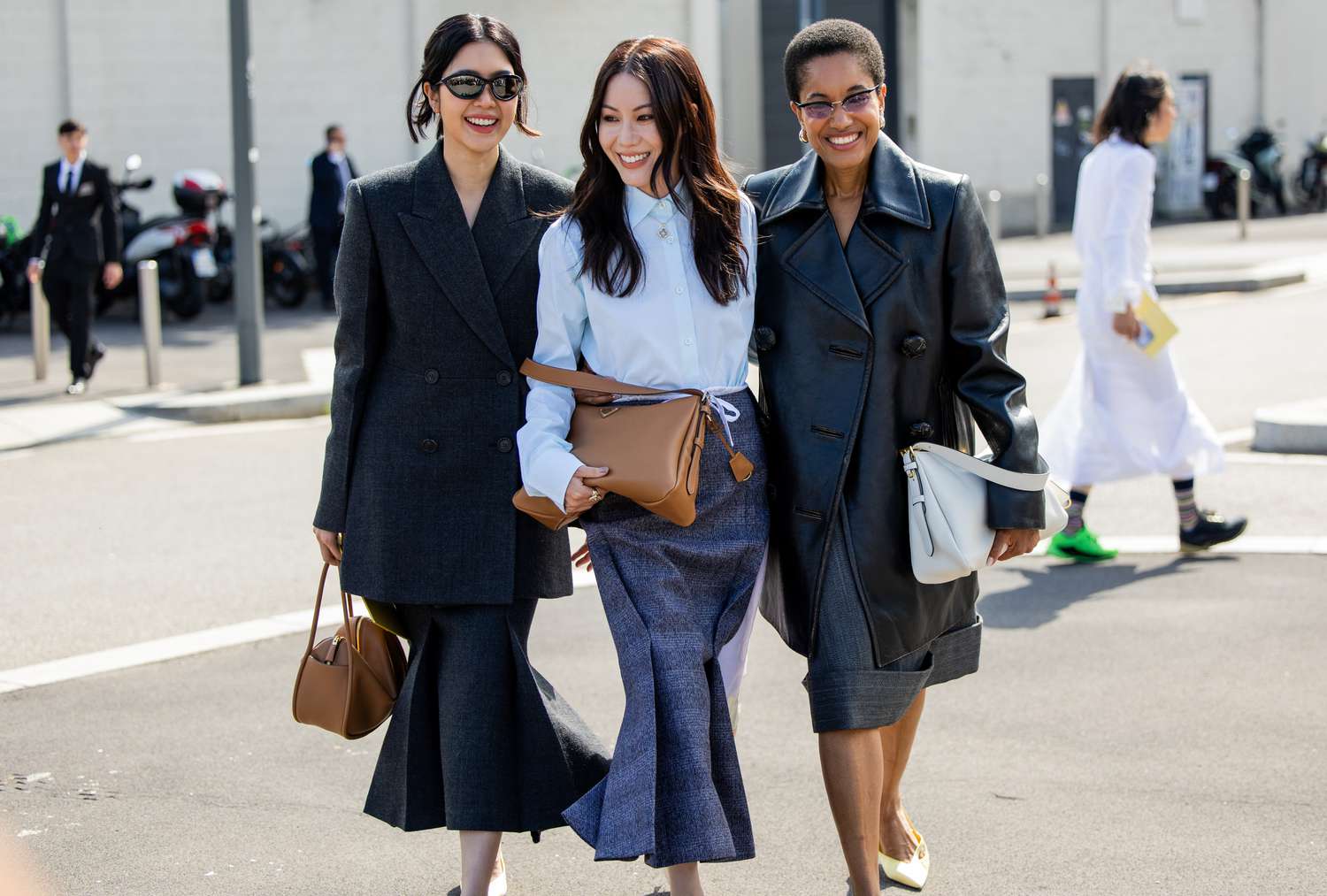 - White sneakers for a sporty but polished twist.