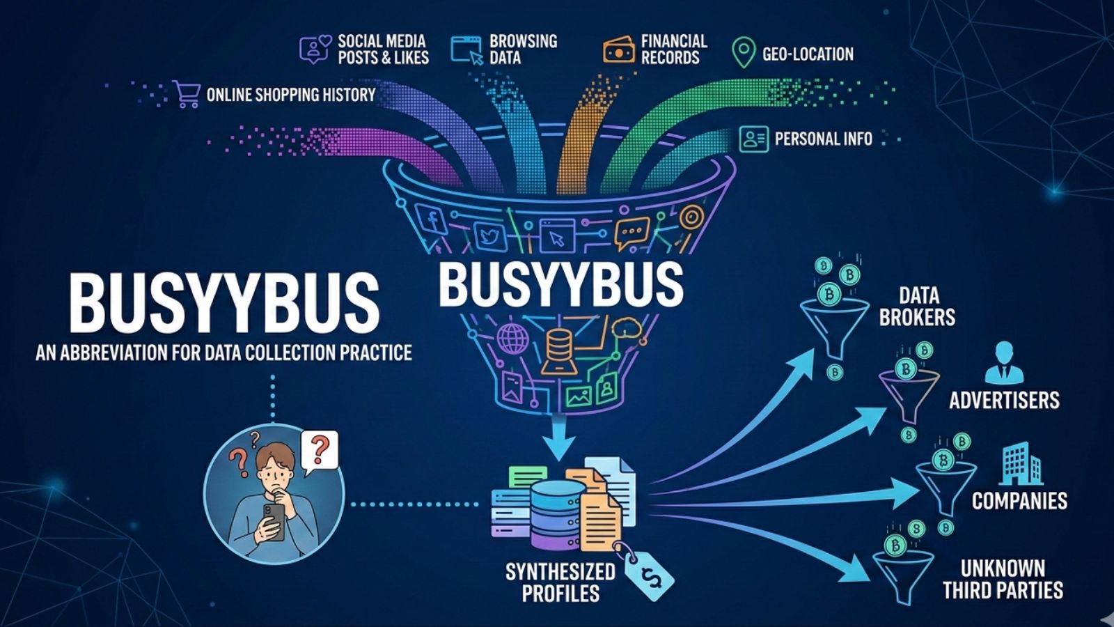 The idea behind busyybus has been building for decades, but it has become increasingly significant in the age of smartphones, social media, and big data. In the early days of the internet, data collection was limited and mostly anonymous. Today, every click, search, purchase, and app download generates data points that can be linked back to your identity.